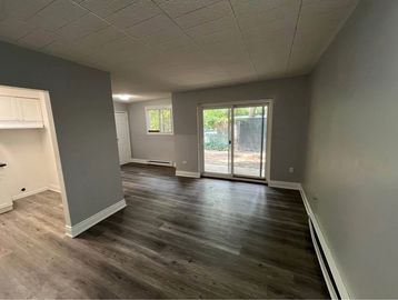 This upper unit is freshly renovated, featuring laminate floors and lots of light. Appliances not included. (photos are of a similar unit)